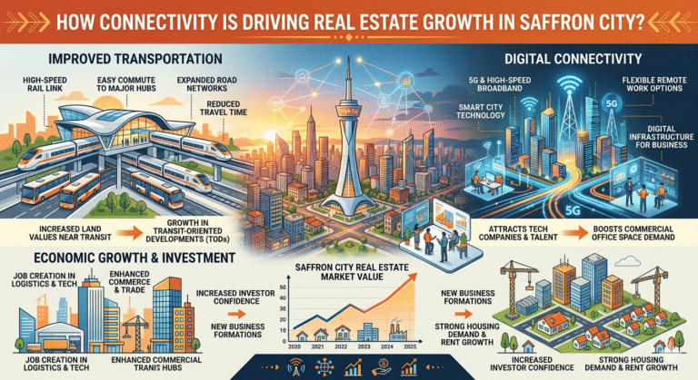 Real estate experts use the term Ring Road Effect to describe the rapid price increases near major transit hubs. Saffron City is witnessing a surge in demand because of this effect.